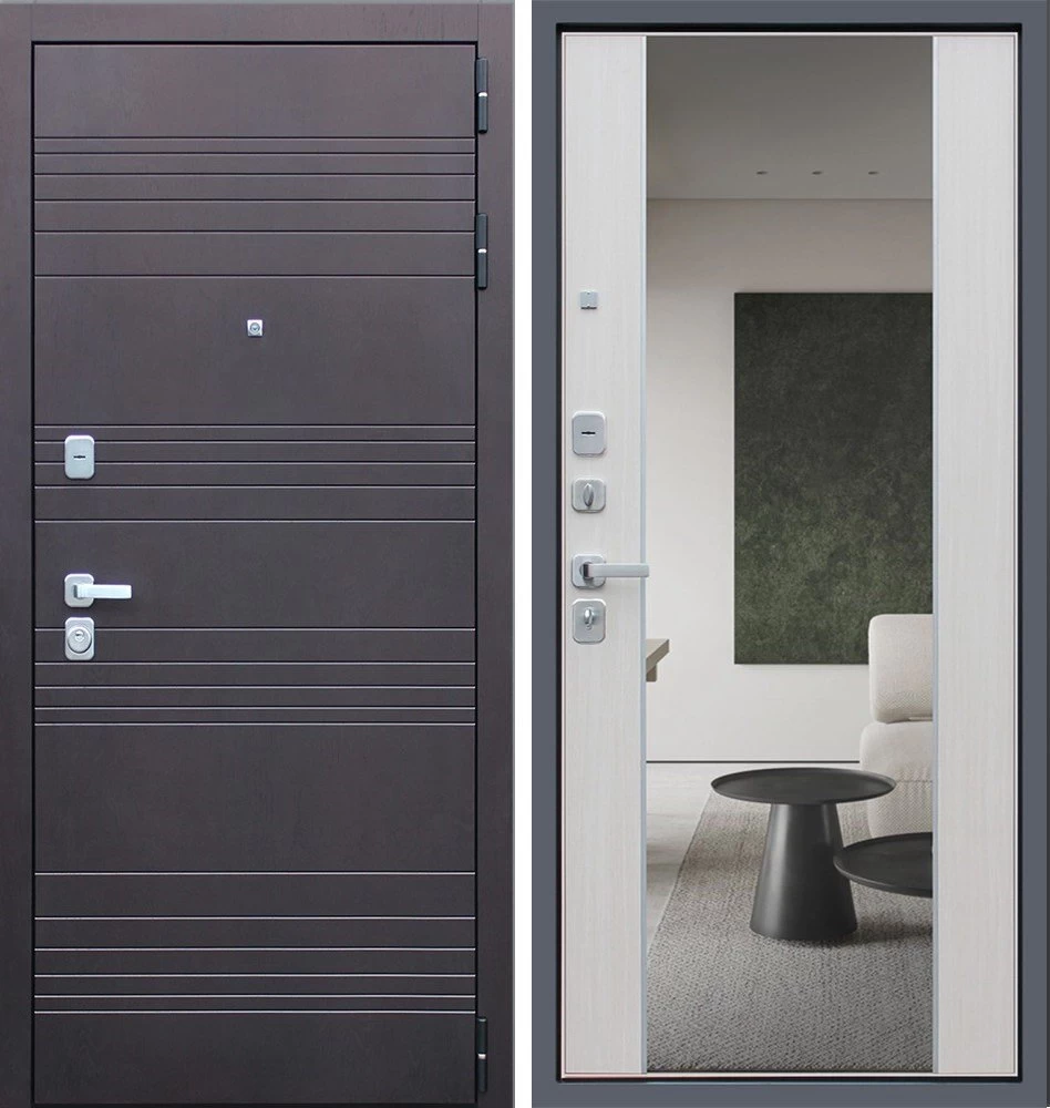 Надежная входная Дверь Дуэт с зеркалом премиум класса по цене 46 793 руб. Большая толщина стали защитит от проникновения в ваш дом, квартиру или коттедж. Используется очень качественная фурнитура: замки, цилиндры, ручки, защелки. Покрытие и отделка двери изготовлено под внимательным контролем производителя. Дверь имеет долгий срок службы и гарантию.
